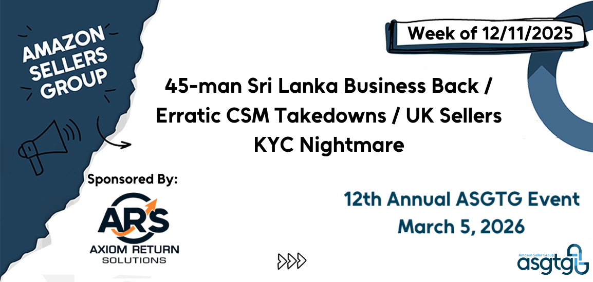 1. CSM approvals seem out of control, and many brands are going up and down and back up again; Suits reinstated the 45-man Sri Lanka business shortly after the ASGTG post; If you are an international seller going to Prosper in March and would also like to attend ASGTG on March 5th, reach out with a special offer; Suits have been in an OK mood but have been out of town to China and India hosting events in those countries; This seller received a fake IP complaint from “Apple CEO Tim Cook”.
