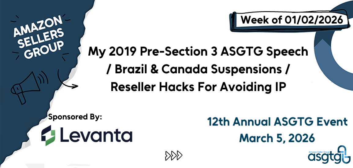 My 2019 Pre-Section 3 ASGTG Speech / Brazil & Canada Suspensions / Reseller Hacks For Avoiding IP